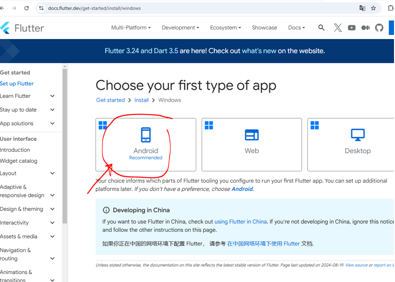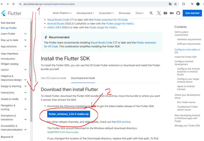 Dentro de https://docs.flutter.dev/get-started/install pinchamos en windows: