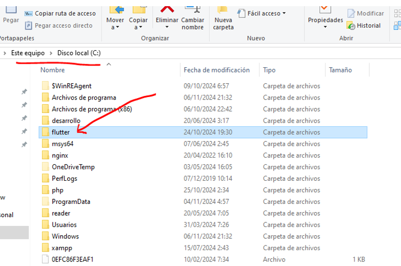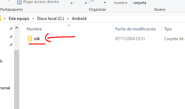 Vamos a la unidad C: y creamos una carpeta llamada Android: