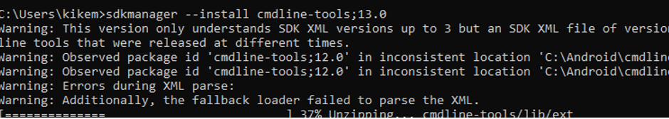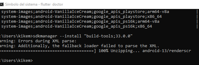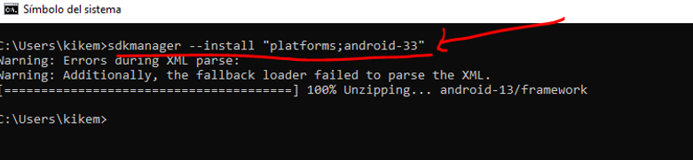 Y ahora la plataforma “andorid-33” escribimos: sdkmanager –install «platforms;android-33»