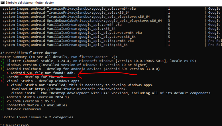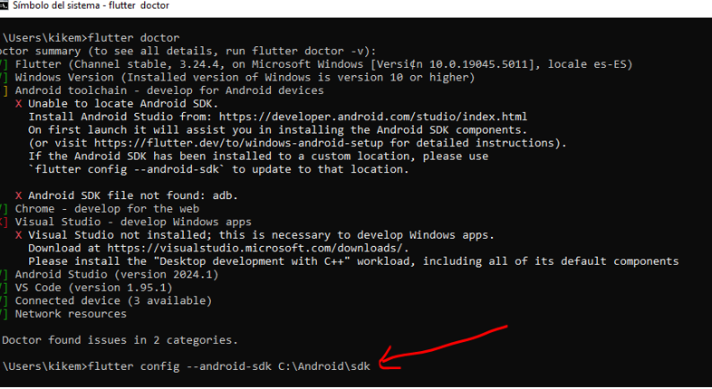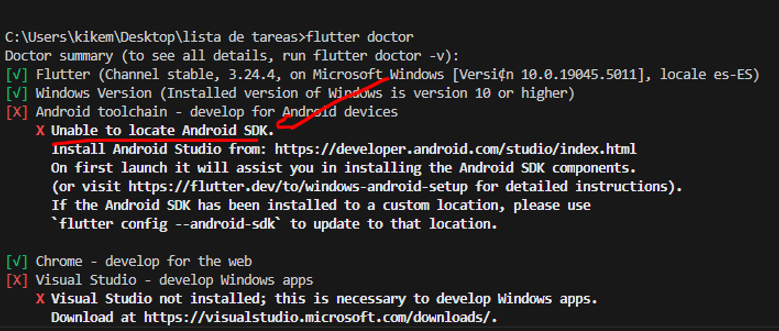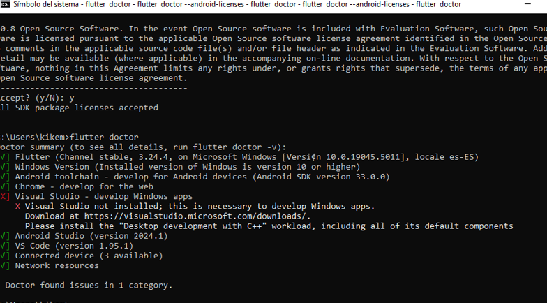 Escribimos flutter doctor