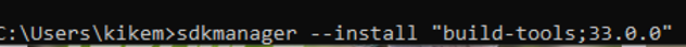 Escribe: sdkmanager –install «build-tools;33.0.0»
