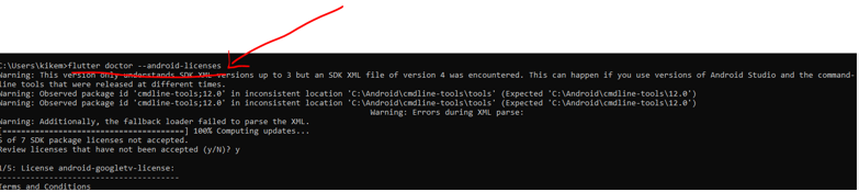 Si nos da un error de licencias, actualizamos el cmdline-tools: