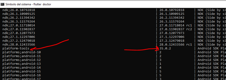 Al escribir sdkmanager –list veo que la versión de platoform-tools es la 35.0.2