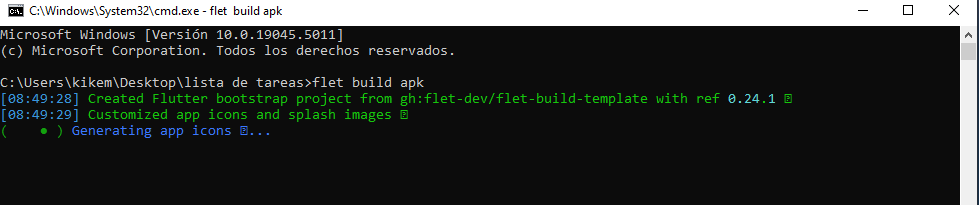 Escribimos flet build apk para crear el apk