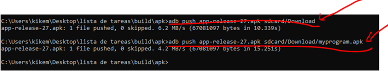 4.1.12.3 adb push ruta/nombre_archivo para poner un archivo