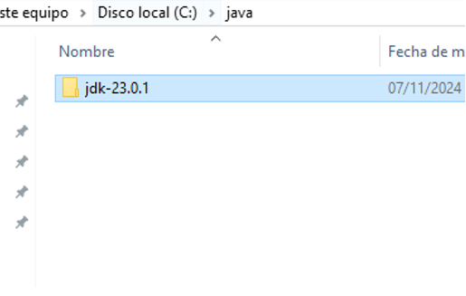 Ponlo en la ruta C:\java
