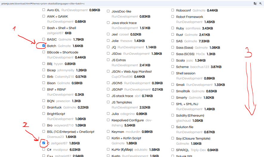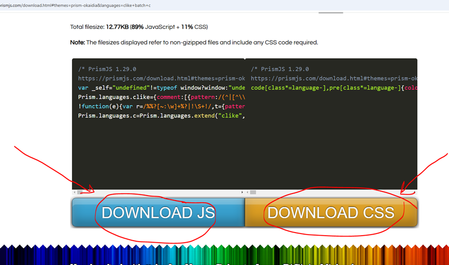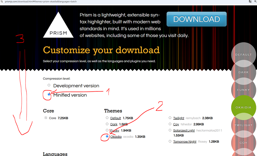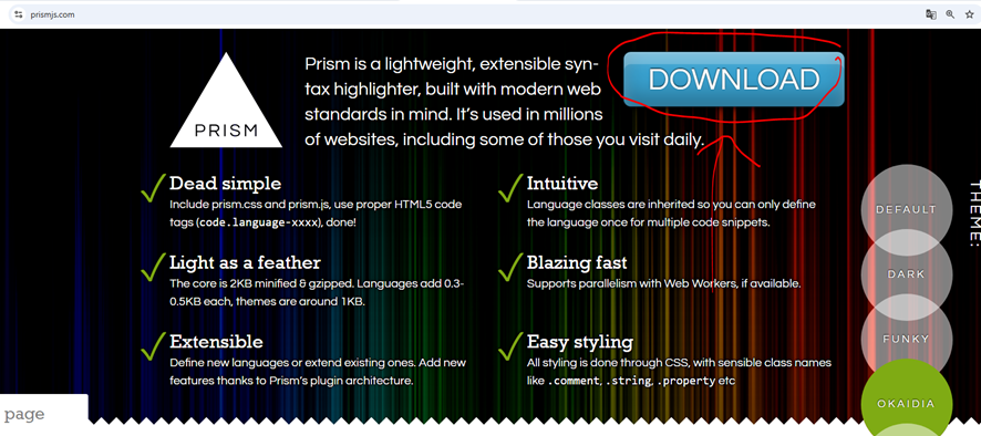 https://prismjs.com/download#themes=prism-okaidia&languages=markup+css+clike+javascript
