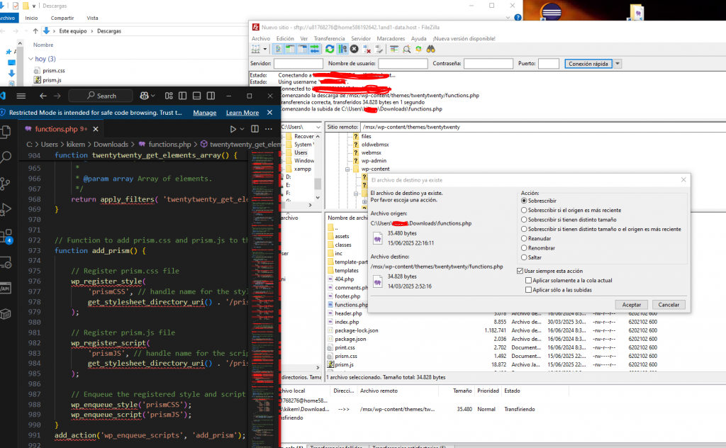 Vamos a nuestro servidor y tu-web/wp-content/themes/nombre_tema_activo